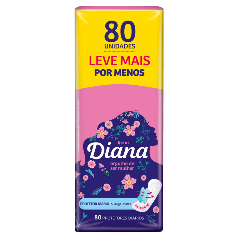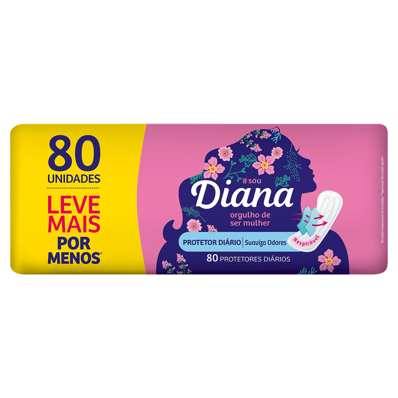 Um protetor diário sem fragrância, ideal para ser usado no finalzinho da menstruação ou mesmo quando não se está naqueles dias. Produzido com microporos e material respirável, Protetor Diário Diana absorve a transpiração e neutraliza possíveis odores.