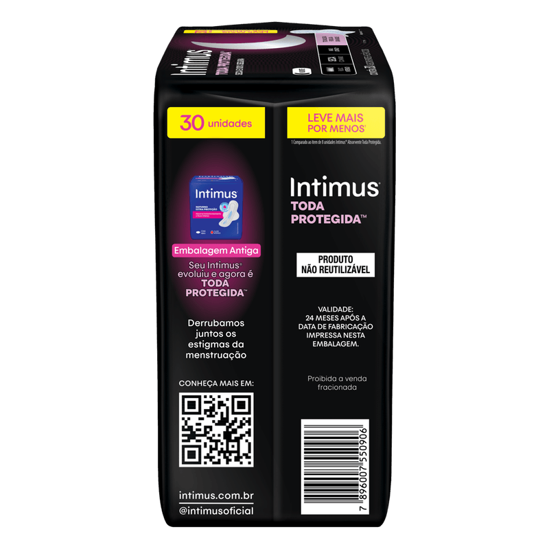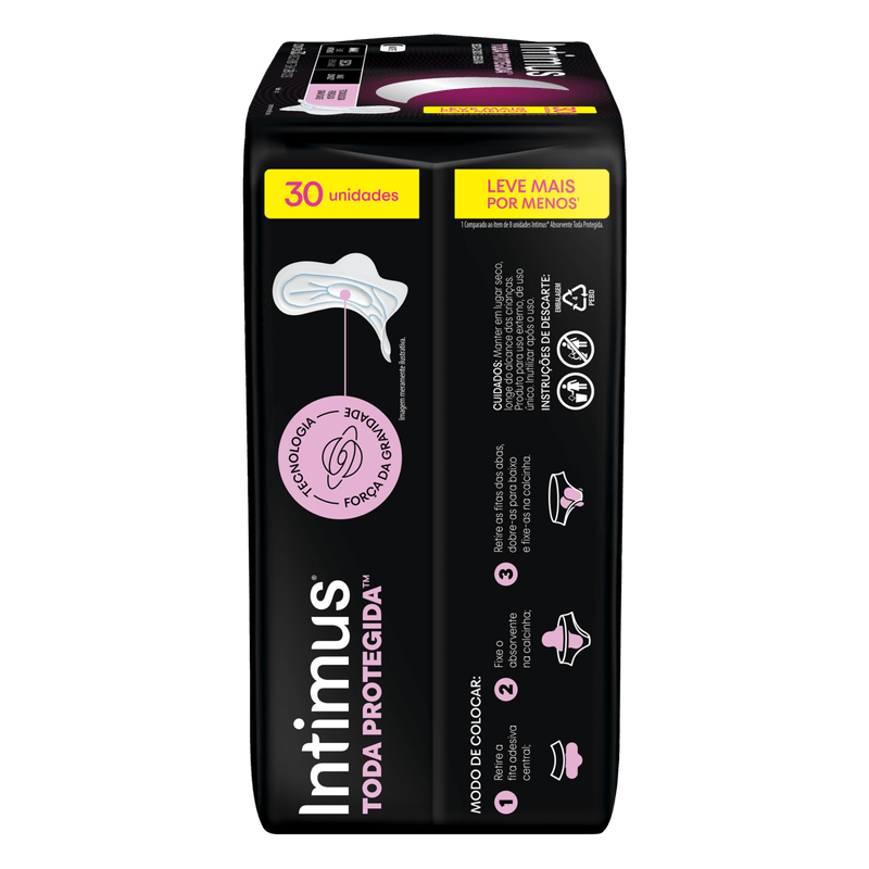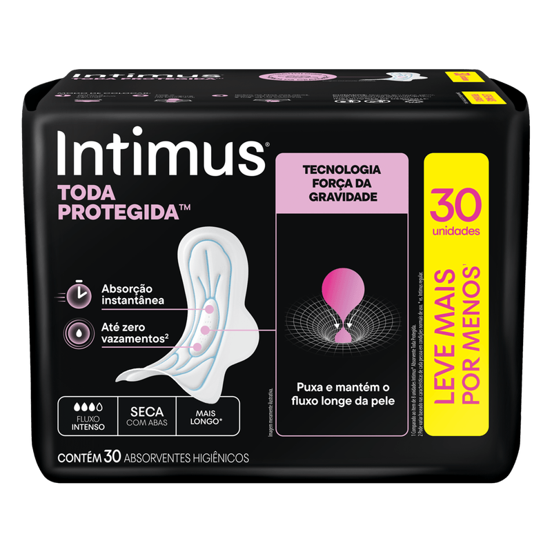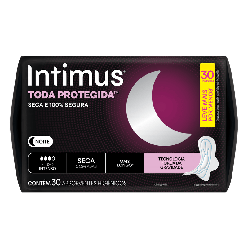 Para noites mais tranquilas, escolha certo. O Absorvente Intimus® Noturno extra proteção absorve rápido e previne vazamentos. Isso só seria possível pela dupla área de absorção: No centro e atrás, onde você mais precisa de proteção. Além de distribuir o fluxo por todo o absorvente, ainda conta com abas que se encaixam perfeitamente prevenindo que o absorvente se mova. Ideal para todos os fluxos, especialmente intensos. O Absorvente Intimus® Noturno extra proteção tem Tecnologia Odor Block e controle de odores.