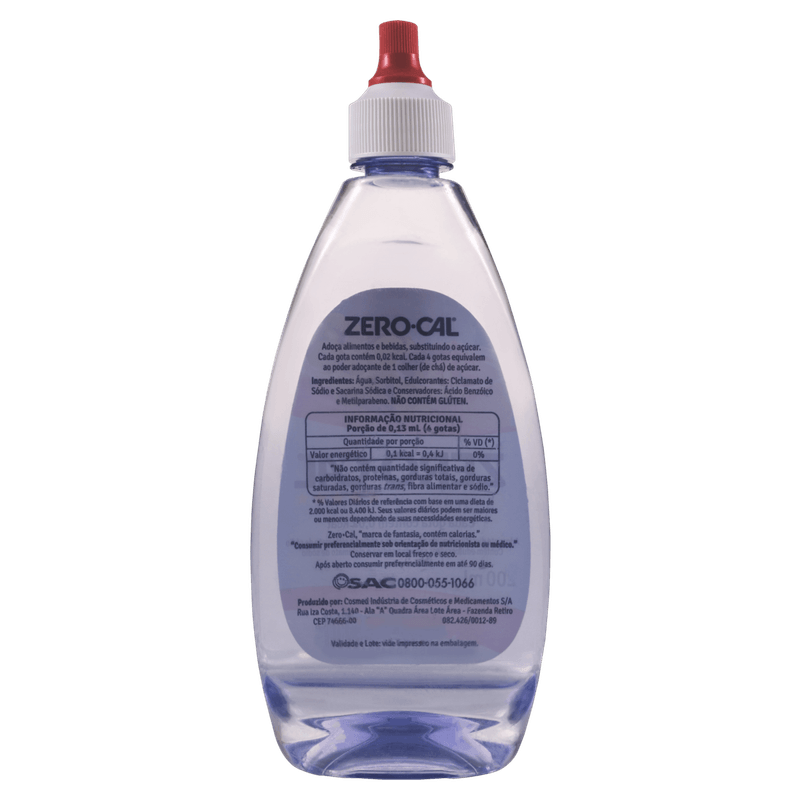 O Adoçante Líquido Zero-Cal Sacarina é um produto em frasco de 200ml, indicado para dietas que buscam substituir o açúcar com adoçamento sem calorias, ideal para uso em alimentos e bebidas.