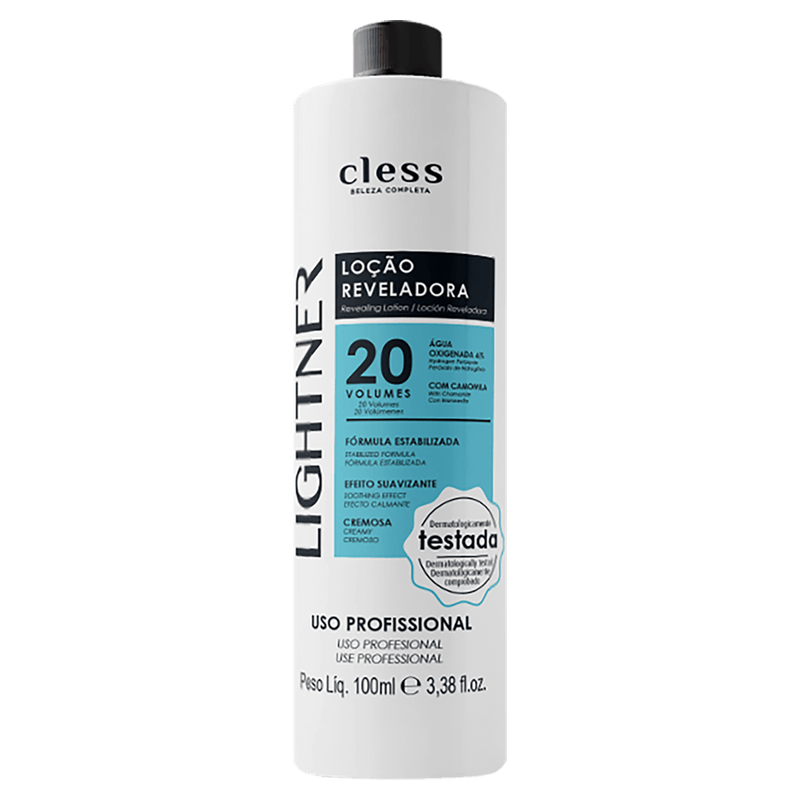 A Lightner traz inovação para o mercado com uma Água Oxigenada Cremosa, que age de forma homogênea na descoloração dos pelos sem irritar a pele. Sua fórmula foi desenvolvida com Camomila, que proporciona uma descoloração mais suave, protegendo sua pele e seus cabelos. Além disso, ajuda a facilitar o processo de descoloração, com uma textura cremosa e melhor aderência ao pó descolorante.