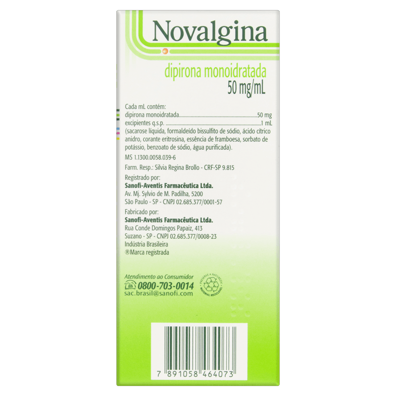 Novalgina Framboesa deve ser utilizado conforme orientação médica. Evite a automedicação e informe seu médico sobre qualquer reação adversa. Este medicamento requer prescrição médica. Medicamento genérico conforme a lei n.º 9.787/99.