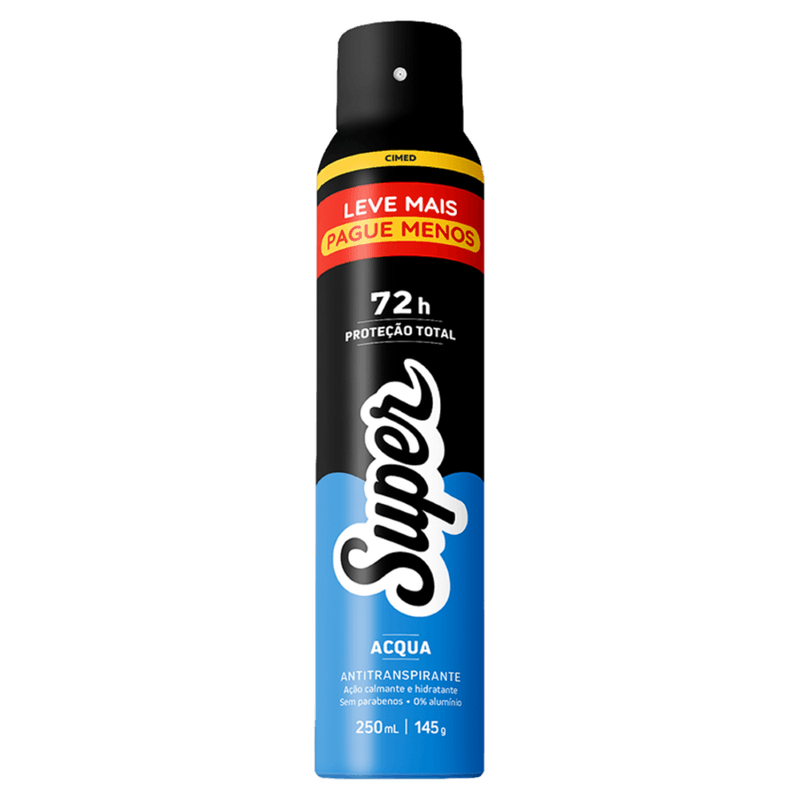 Antitranspirante Aerossol Acqua 72h Super Men 250ml Spray Leve Mais Pague Menos