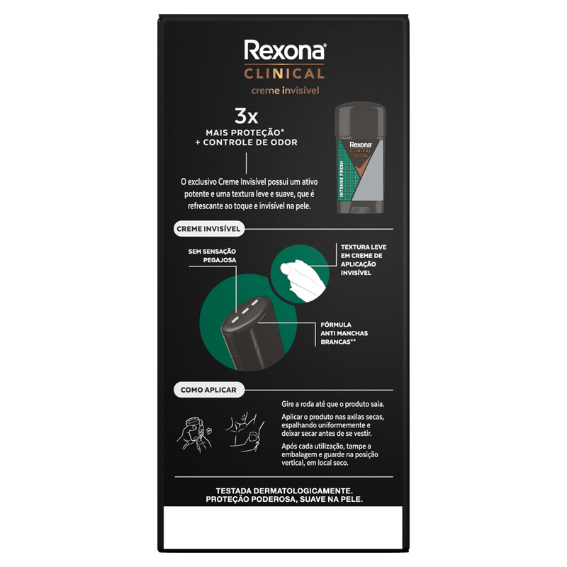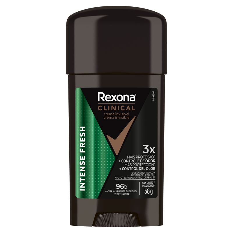 O Antitranspirante Creme Clinical Men Intense 96h Fresh da Rexona é um desodorante em creme com 58g, desenvolvido para oferecer proteção eficaz contra o suor e o odor por até 96 horas, proporcionando sensação de frescor.