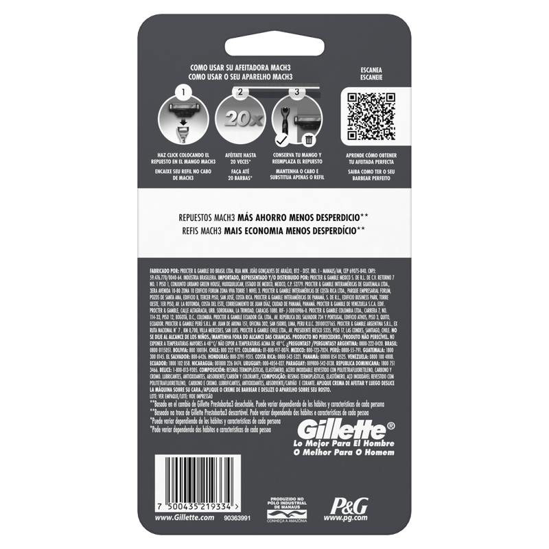 O Aparelho Recarregável e Carga para Barbear Gillette Mach3 Carbono é um produto da categoria Aparelhos Cargas e Lâminas, desenvolvido para proporcionar um barbear eficiente, removendo impurezas da pele. Ele conta com três lâminas feitas de aço inoxidável revestido com politetrafluoretileno, cromo e carbono, garantindo durabilidade e precisão.