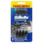 Aparelho Descartável para Barbear com Carvão Gillette Prestobarba3 Carbono 8 Unidades