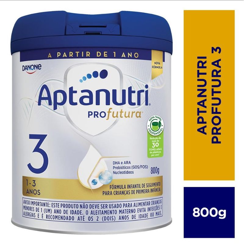 Com apresentação em pó e embalagem de 800g, Aptamil Profutura 3 é indicado para crianças de 1 a 3 anos que necessitam de suporte nutricional complementar. Sua fórmula balanceada e textura fácil de dissolver garantem praticidade e segurança no preparo, atendendo às necessidades específicas dessa faixa etária.