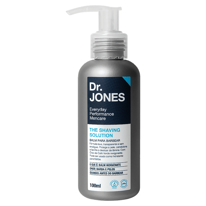 The Shaving Solution, da Dr. Jones, é um balm para barba multifuncional que pode ser usado na hora de se barbear, para alinhar e condicionar os pelos e para hidratar e acalmar a pele.