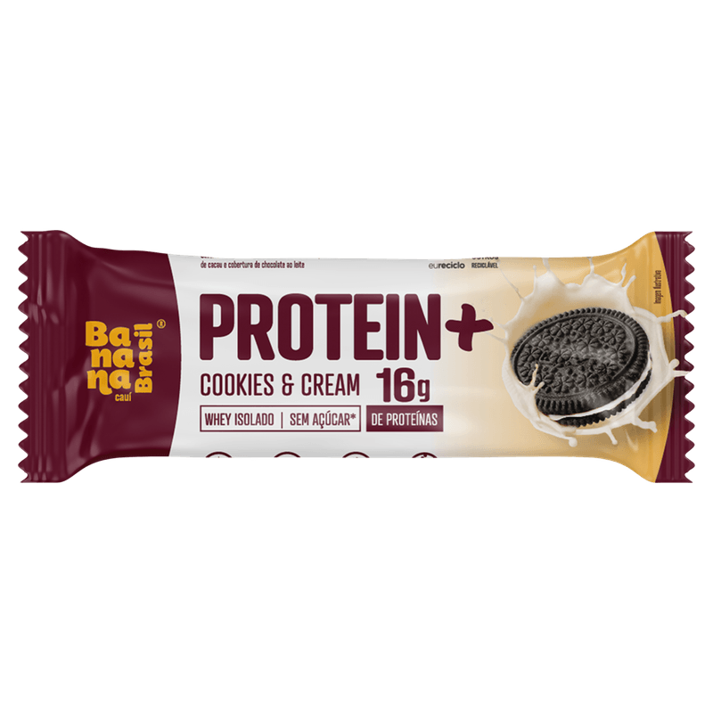 A Barra de Proteína Protein+ Cookies & Cream Cobertura Chocolate ao Leite é um suplemento alimentar em formato de barra de 50g, indicada para consumo rápido como fonte de proteínas em dietas balanceadas.