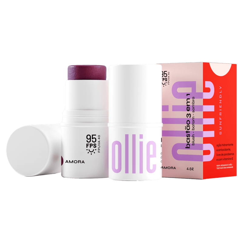 O Bastão 3 em 1 Blush/Batom/Sombra Amora FPS 95 Ollie é a solução prática e versátil para quem busca maquiagem multifuncional com alta proteção solar. Com fórmula cremosa e fácil aplicação, oferece cor intensa e acabamento natural, ideal para realçar a beleza em qualquer ocasião, além de proteger a pele dos danos causados pelo sol com FPS 95.