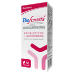 O Suplemento Alimentar Bio Femina Zero Açúcar é apresentado em caixa com 30 cápsulas, formulado para uso como alimentação especial, focado na saúde íntima feminina.
