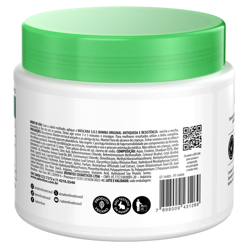 A Máscara Capilar Bomba Antiqueda 500g Salon Line é um tratamento poderoso para todos os tipos de cabelo, que promove a redução da queda, limpeza profunda e fortalecimento dos fios. Sua fórmula em creme penetra profundamente, revitalizando o couro cabeludo e estimulando o crescimento saudável dos cabelos.