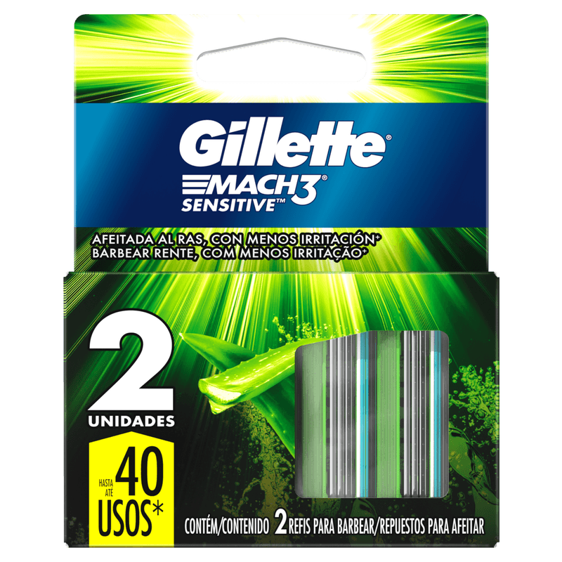 A Carga para Aparelho de Barbear Mach3 Sensitive Gillette contém 2 unidades de lâminas desenvolvidas para pele sensível, oferecendo proteção e conforto durante o barbear. Com tecnologia Skin Protect, proporciona uma experiência suave e reduz a irritação da pele.
