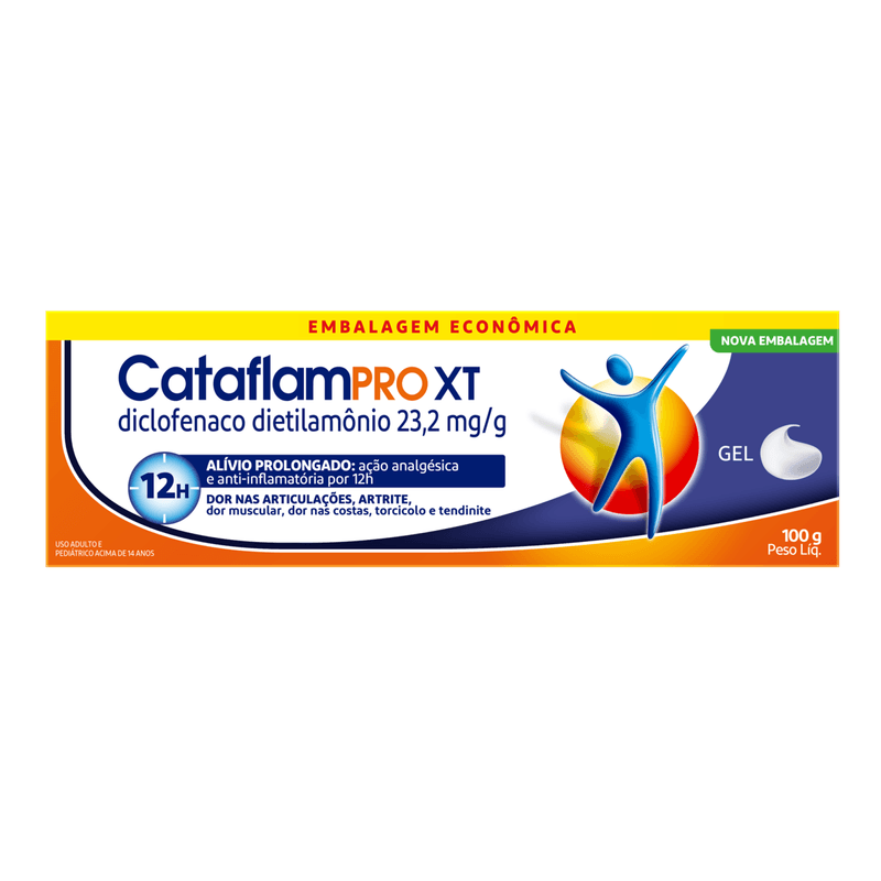 Cataflam Pro XT atua diretamente na inibição da síntese de prostaglandinas, reduzindo dor, inchaço e inflamação local. Apresentado em embalagem econômica de 100g, sua aplicação tópica é prática e segura, com tarja vermelha e venda sob prescrição médica. Ideal para quem necessita de um tratamento anti-inflamatório confiável e de ação prolongada.