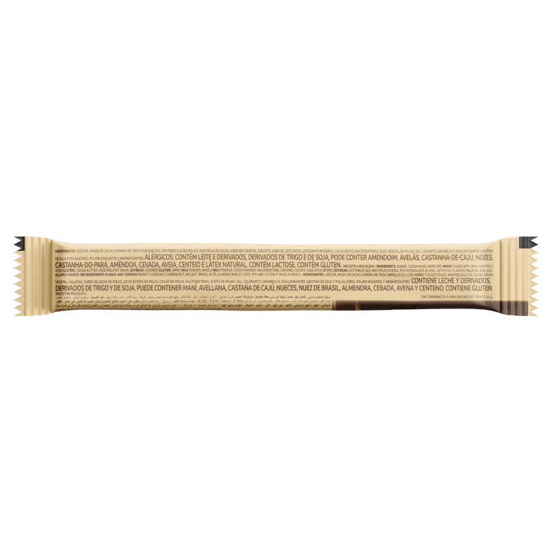 • Ingredientes principais: Açúcar, farinha de trigo enriquecida, massa de cacau, manteiga de cacau, biscoito, leite em pó, emulsificantes