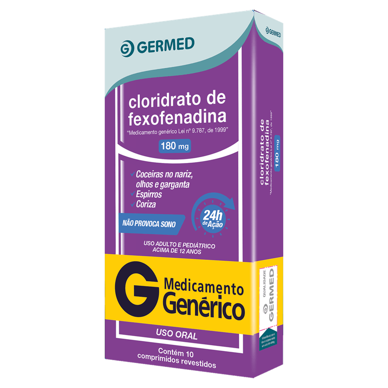 O Cloridrato de Fexofenadina 180mg Germed é um medicamento antialérgico indicado para o alívio dos sintomas da rinite alérgica sazonal e da urticária idiopática crônica. Com ação prolongada de até 24 horas, ele reduz espirros, coriza, prurido nasal, congestão, olhos lacrimejantes e vermelhidão ocular sem causar sonolência, garantindo conforto e qualidade de vida. Ideal para adultos e crianças acima de 12 anos que buscam um tratamento eficaz e seguro contra alergias.