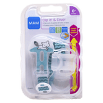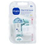 O Prendedor de Chupeta MAM Clip It Cover Boys é um acessório infantil apresentado com um clip de plástico transparente, alça de tecido e anel flexível de silicone, indicado para prender chupetas, mordedores e brinquedos. Desenvolvido para meninos, possui estampa com dois hipopótamos em tons de azul claro, branco e cinza, oferecendo praticidade e proteção para os itens do bebê.