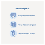 • Anel flexível que se adapta a chupetas com botão;