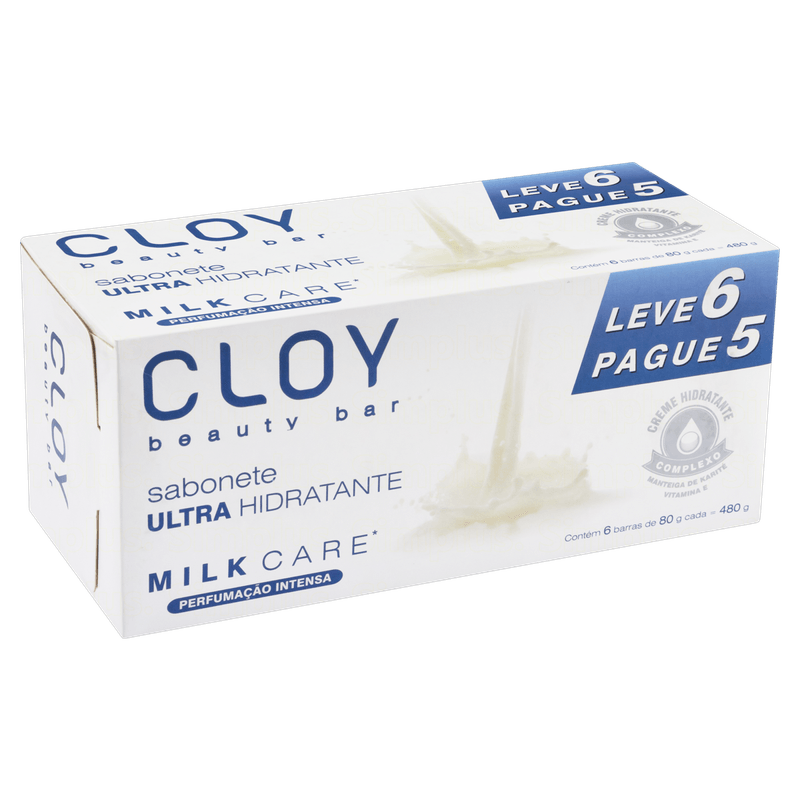 CLOY elevou o conceito de sabonete, criou um produto de beleza - beauty bar. CLOY ULTRA HIDRATANTE possui uma fórmula exclusiva com complexo de creme hidratante, manteiga de karité e vitamina E. CLOY vai limpar sua pele sem ressecá-la mantendo sua beleza natural. Contém 6 sabonetes de 80g - fragrância MILK CARE.