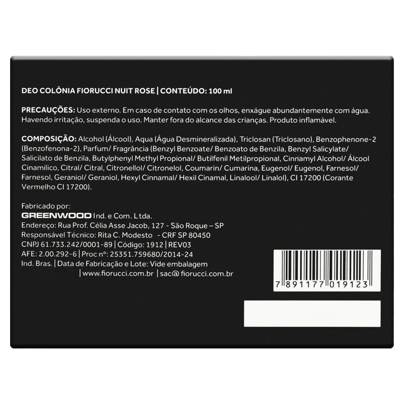 Deo Colônia Nuit Rose Fiorucci Caixa 100ml