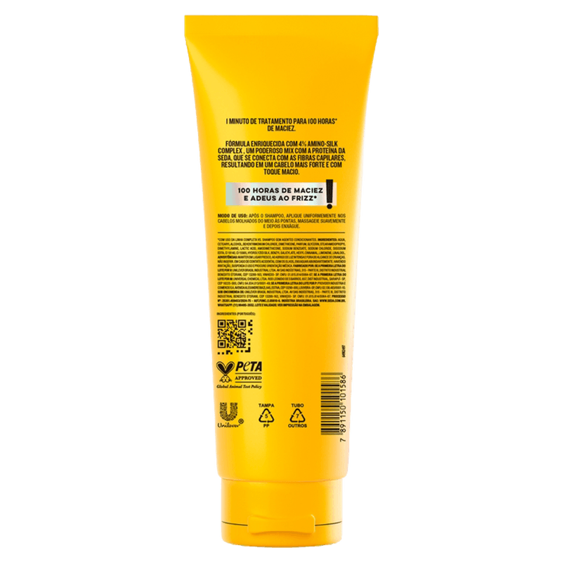 Modo de Usar: Após o shampoo, aplique uniformemente nos cabelos molhados do meio às pontas, massageie suavemente e enxágue completamente.
