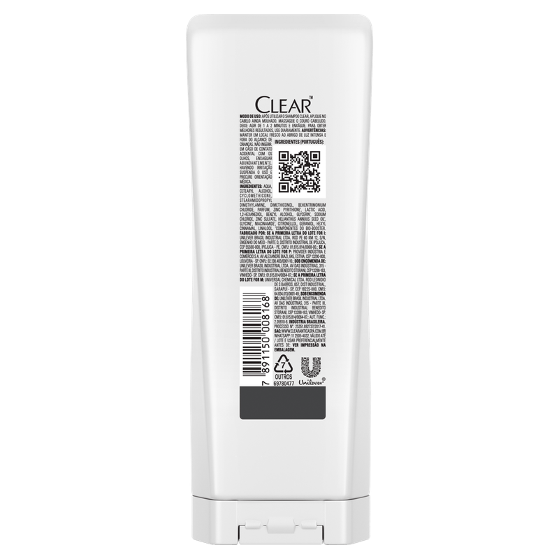 Modo de usar: Após lavar o cabelo com shampoo CLEAR, aplique o condicionador no cabelo molhado. Massageie o couro cabeludo e espalhe pelo comprimento até as pontas. Deixe agir por 1 a 2 minutos e enxágue completamente. Para melhores resultados, utilize diariamente.