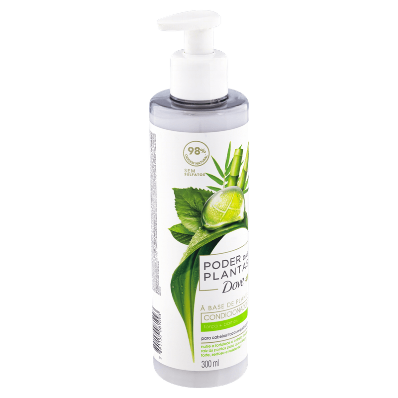 Dove Poder das Plantas Força + Bambu é o primeiro condicionador restaurador da Dove. Ele traz uma fórmula com 98% de ingredientes de origem natural e fragrância 100% de origem natural, com buquê complexo de ervas aromáticas. Além disso, ele não contém sulfatos, parabenos, silicones ou corantes em sua composição, para uma rotina de cuidados com os cabelos mais saudável e eficaz para o dia a dia.