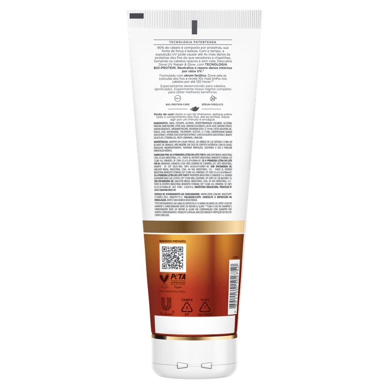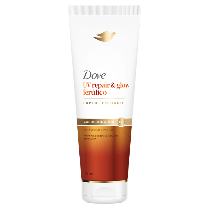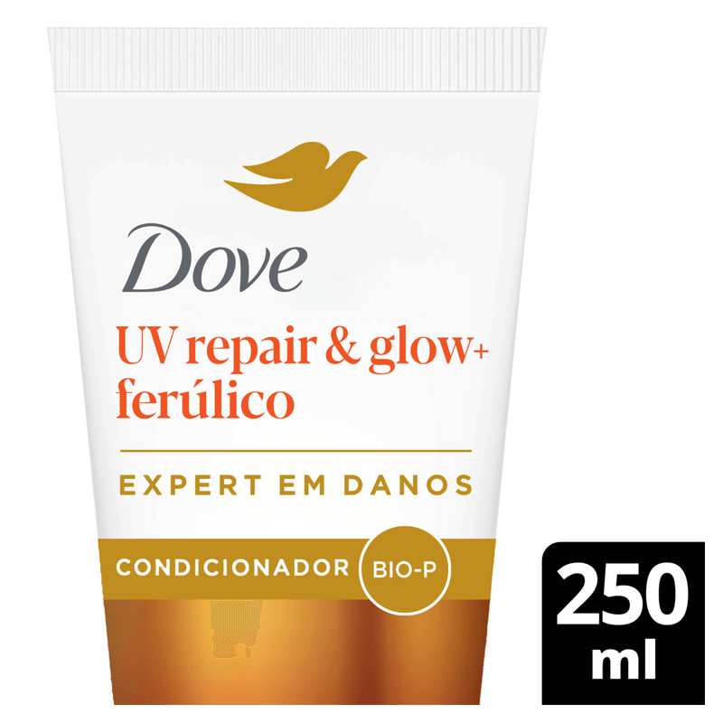 O Condicionador Dove UV Repair e Glow + Ferúlico - 250ml oferece cuidado avançado para os cabelos expostos ao sol. Sua fórmula enriquecida com Ácido Ferúlico ajuda a reparar os danos causados pelos raios UV, restaurando a saúde dos fios e protegendo contra futuros desgastes. Proporciona hidratação profunda, maciez, brilho radiante e aspecto saudável desde o primeiro uso. Ideal para quem busca cabelos mais fortes, nutridos e com luminosidade natural.