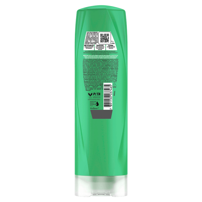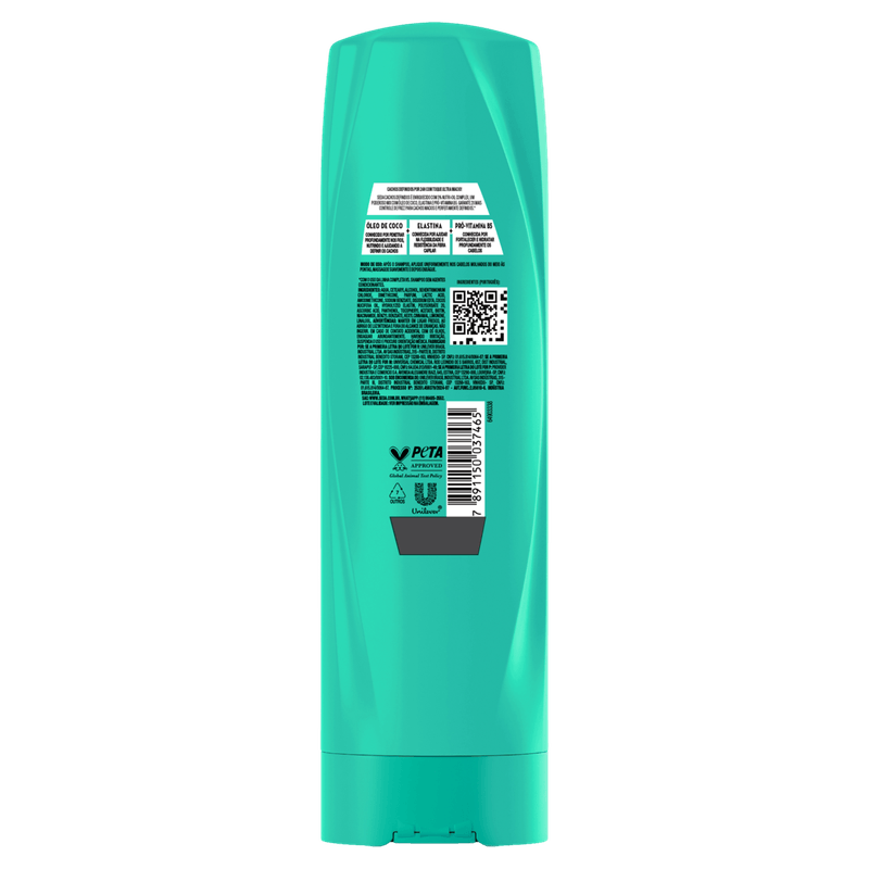 Modo de usar: Após o shampoo, aplique o condicionador nos cabelos molhados, espalhando por todo o comprimento, com foco nas pontas. Deixe agir por 30 segundos e enxágue completamente.