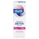 A Pasta de Dente Oral-B Gengiva Detox Sensitive Care 102g é um creme dental formulado com fluoreto de estanho estabilizado, indicado para a higiene bucal diária, com foco no fortalecimento da gengiva e alívio da sensibilidade.