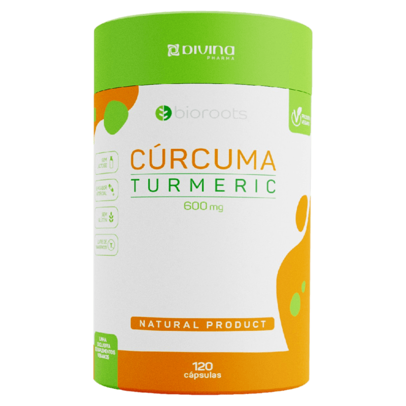 O Curcuma Turmeric Bioroots 600mg é um suplemento natural em cápsulas que oferece 80mg de curcumina padronizada USP 95% por unidade, reconhecida por suas propriedades anti-inflamatórias, antioxidantes, antibacterianas e digestivas. Ideal para adultos que buscam melhorar a digestão, desintoxicar o fígado, regular a flora intestinal, fortalecer o sistema imunológico e aliviar inflamações na pele, como eczema e psoríase. Também auxilia na redução do colesterol, combate resfriados, previne crises de asma, elimina vermes intestinais, apoia a perda de peso e alivia sintomas da tensão pré-menstrual.