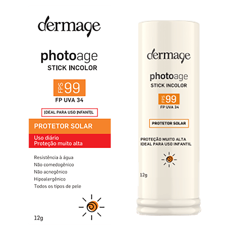 O Protetor Solar Infantil Stick Incolor FPS 99 da Dermage oferece proteção solar extrema com cobertura invisível, ideal para uso diário. Com um fator de proteção solar (FPS) de 99 e FPUVA 34, é resistente à água e ao suor, tornando-se perfeito para crianças e adultos durante atividades físicas. É indicado para todos os tipos de pele e pode ser utilizado por crianças a partir de 2 anos. Este produto é não comedogênico, não acnegênico e hipoalergênico, garantindo segurança e conforto. A composição inclui ingredientes como óxido de zinco e extrato da raiz de withania somnifera, que ajudam a proteger e cuidar da pele. O stick é prático e fácil de aplicar, ideal para quem busca proteção solar eficaz e conveniente.