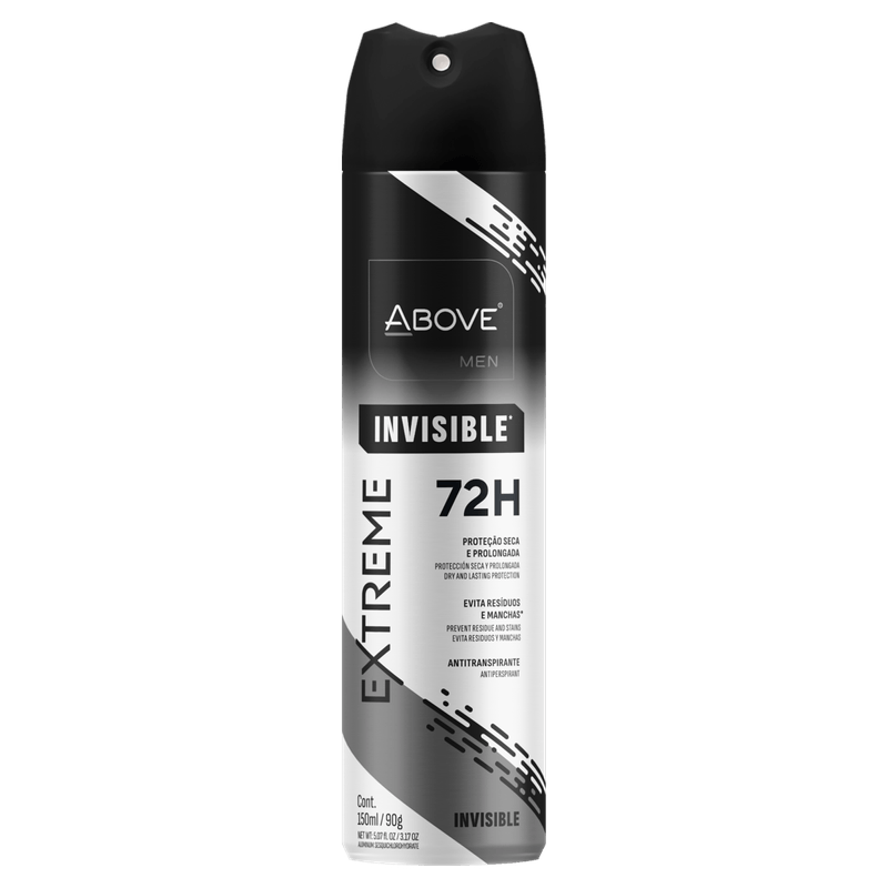 Proteção extrema e frescor duradouro com o Desodorante Aerossol Above Extreme Invisible, desenvolvido para proporcionar72 horas de proteção contra odores e suor, sem deixar marcas em suas roupas.