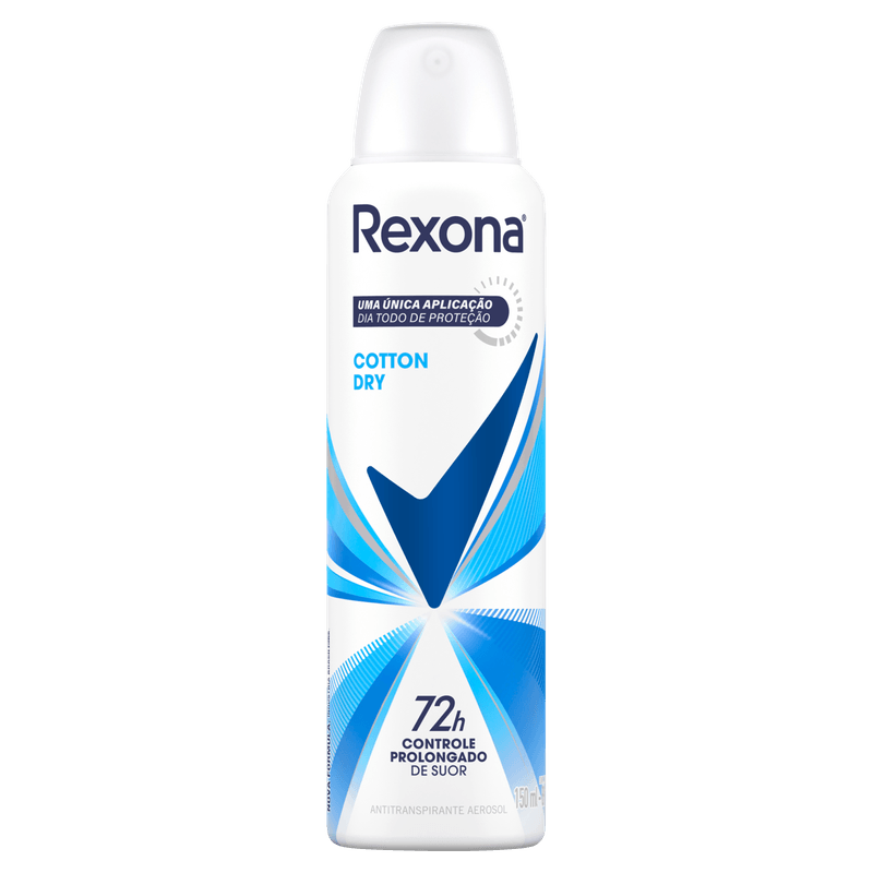 • A exclusiva fórmula do Desodorante Aerosol Feminino Rexona Cotton Dry garante 72 horas de proteção contra o suor e o mau odor ativado pelo movimento