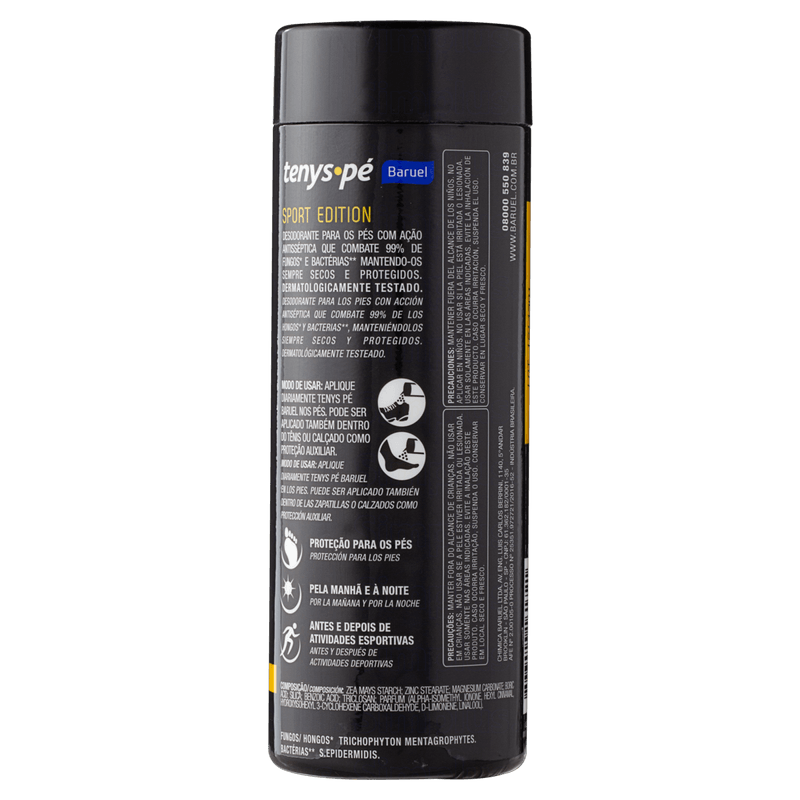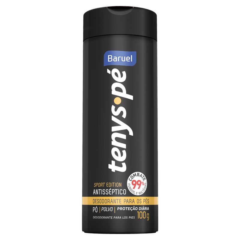O Desodorante Pó para os Pés Sport Edition 100g Antisséptico Tenys Pé é um produto da linha Tenys Pé, desenvolvido para manter os pés secos e protegidos, com ação antisséptica que combate fungos e bactérias.