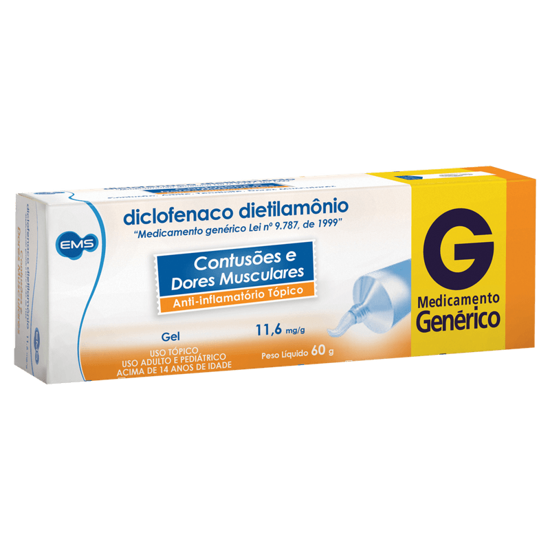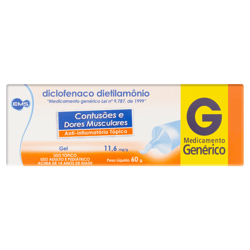 Diclofenaco Dietilamonio 10mg Gel Dermatológico 60g - Genérico - EMS é um anti-inflamatório tópico indicado para o alívio eficaz de dores leves a moderadas e inflamações causadas por entorses, contusões, tendinites, dores musculares, articulares e nas costas. Sua fórmula em gel permite aplicação direta na área afetada, proporcionando rápida absorção e minimizando efeitos sistêmicos, ideal para adultos acima de 14 anos que buscam alívio localizado com praticidade.