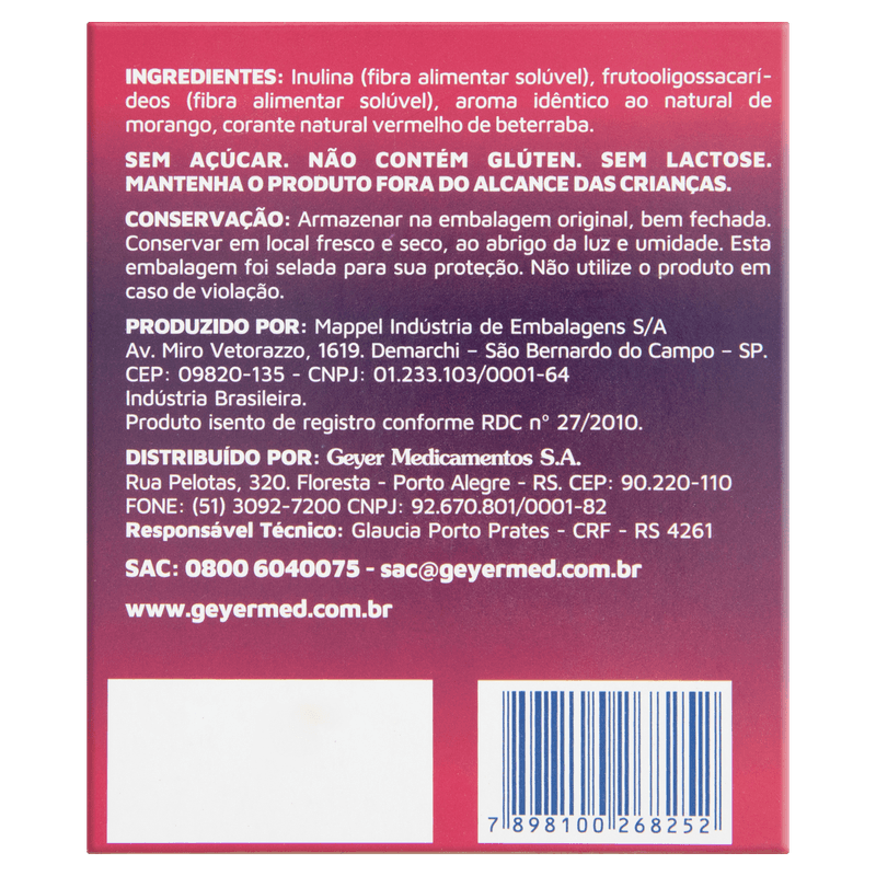 • Apresentação: Caixa com 30 sachês de 8,3 g
