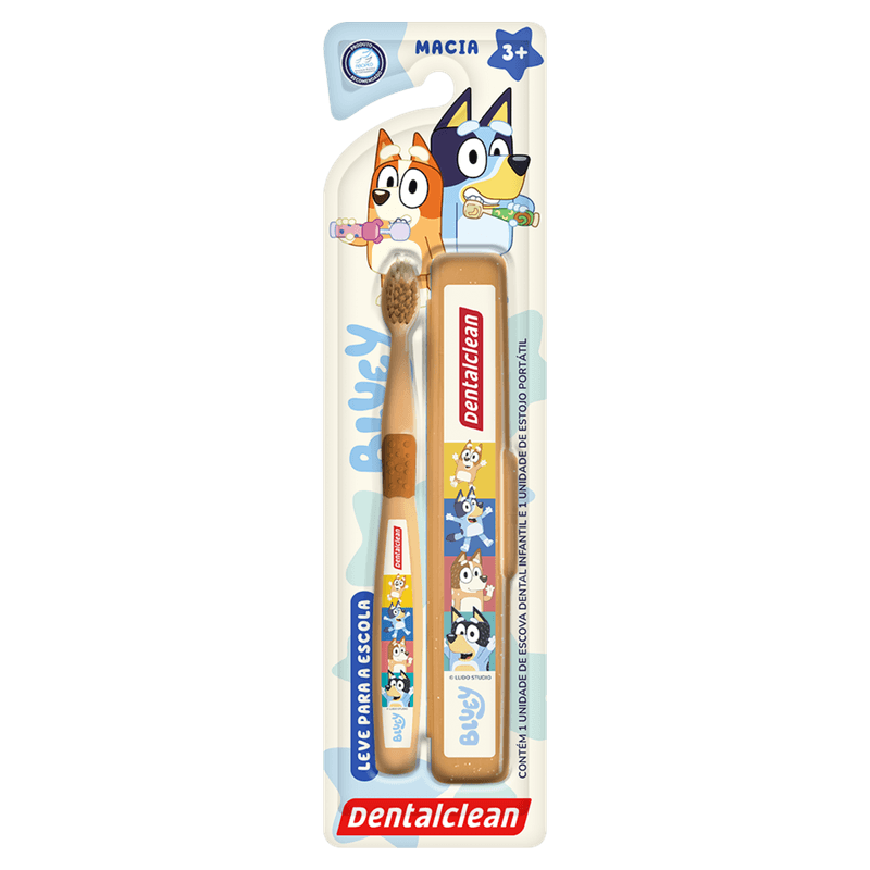 Este produto atua na limpeza diária dos dentes infantis, promovendo saúde bucal e conforto. Com composição livre de BPA, cerdas macias e cabo ergonômico, é indicado para crianças de 3 a 6 anos. A escova escolar Bluey, na cor azul com detalhes em branco e estampa do personagem, tem textura macia e vem com estojo para facilitar o transporte. Fabricada no Brasil, é uma escolha prática e segura para a rotina de cuidados dentários infantis.
