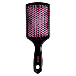 Escova Basic Racket Ricca com base almofadada que proporciona uma escovação muito mais confortável e cerdas de nylon com pontas protetoras que massageiam o couro cabeludo.