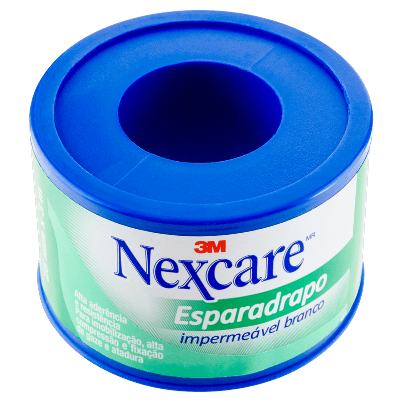 Esparadrapo Impermeável Nexcare® Branco - 25 mm x 3 m. O Esparadrapo Impermeável Nexcare® Branco é uma fita mais tradicional, bastante resistente e com alta aderência. É ideal para fixações de alta compressão e imobilizações, sendo utilizado sobre gaze ou fita. O Esparadrapo Impermeável Nexcare® Branco é uma fita mais tradicional, bastante resistente e com alta aderência. É ideal para fixações de alta compressão e imobilizações. Por ser impermeável, recomenda-se seu uso sobre gaze ou fita. Conheça este produto indispensável em seu kit de primeiros socorros! O Esparadrapo Impermeável Nexcare® Branco é feito com fita de tecido 100% algodão e apresenta resistência à água. Além disso, ele corta de forma fácil, sem a necessidade do uso de tesouras. Não deve ser aplicado sobre peles sensíveis ou sensibilizadas. Fita mais tradicional, bastante resistente e com alta aderência. Esparadrapo Nexcare® impermeável, feito com fita de tecido 100% algodão, feito com fita de tecido 1% algodão, apresenta resistência à água. Ideal para fixações de alta compressão e imobilizações, recomenda-se seu uso sobre gaze ou fita. Não deve ser aplicado sobre peles sensíveis ou sensibilizadas.