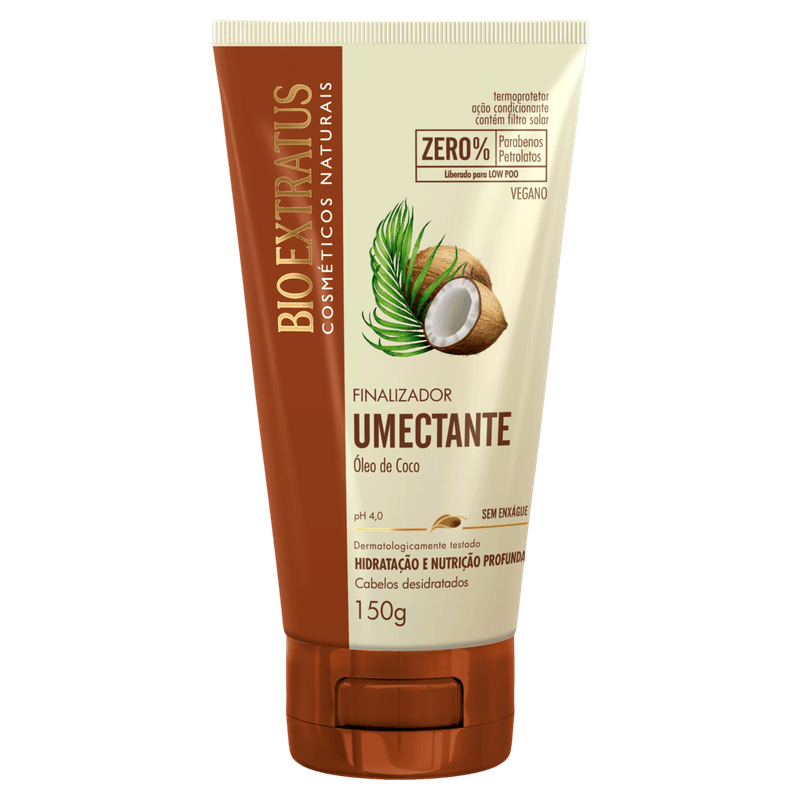 O Finalizador Umectante Óleo de Coco Bio Extratus 150g é um creme nutritivo que hidrata profundamente e protege os cabelos contra agressões externas como sol, vento, calor de secador e chapinha. Sua fórmula livre de petrolatos e parabenos é ideal para quem busca um cuidado natural e eficaz, sendo liberado para a técnica Low Poo.