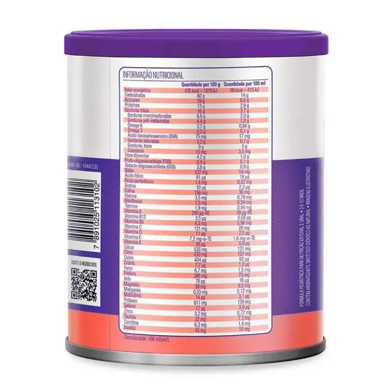 Dilua o pó em água ou adicione a preparações alimentares conforme orientação profissional. Utilize diariamente conforme necessidade nutricional da criança. Armazene a lata em local fresco, seco e ao abrigo da luz.