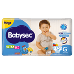Com 32 unidades por embalagem, a fralda descartável Babysec Ultra Mega G alia respirabilidade e sistema anti-vazamento, ideal para uso diário. Sua textura macia e formato anatômico proporcionam conforto e proteção contínua, sendo indicada para peles sensíveis. Produto seguro, prático e eficiente para o cuidado do seu bebê.