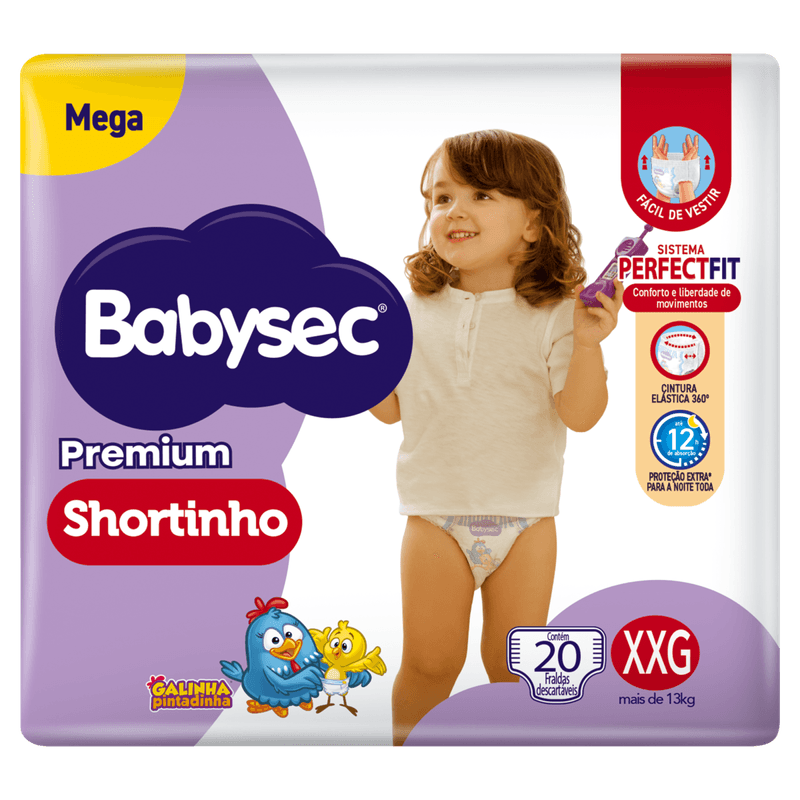 InfantilFralda InfantilRoupinhaBabysec Fralda Descartável Shortinho Premium XXG 20un PerfectFit 12h Hipoalergênica