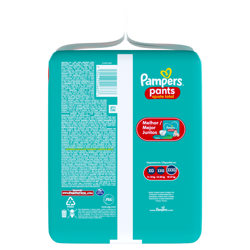 A Fralda Descartável Infantil Pants Ajuste Total Pampers tamanho XXXG é indicada para crianças com peso entre 18 e 27 kg, oferecendo alta absorção e conforto para uso durante o dia e a noite. Desenvolvida no formato tipo roupinha, facilita o vestir e proporciona proteção eficaz contra vazamentos.