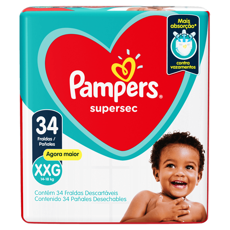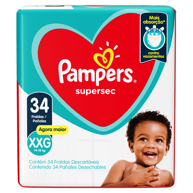 A Fralda Descartável Pampers Supersec XXG é perfeita para bebês acima de 14 kg, oferecendo conforto e proteção prolongada. Com design anatômico e três canais de gel superabsorvente, distribui o líquido de forma uniforme, mantendo a pele seca e prevenindo irritações e assaduras. Sua camada extra de absorção e barreiras antivazamento reforçadas garantem segurança contra vazamentos, enquanto as fitas adesivas reajustáveis proporcionam ajuste perfeito e conforto durante o uso. Hipoalergênica e com cobertura tipo tecido, é ideal para uso diário e noturno, atendendo às necessidades dos pais que buscam qualidade e praticidade.