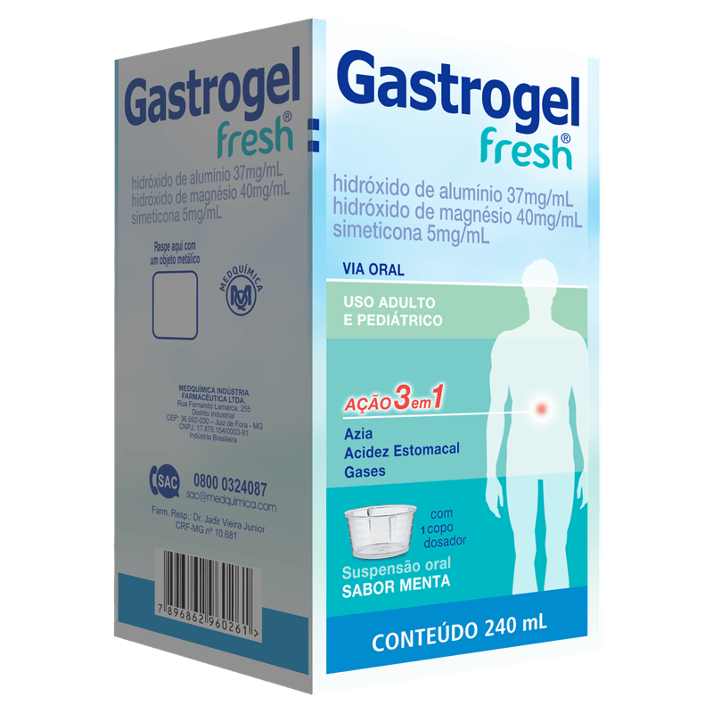 Este medicamento atua diretamente no sistema digestivo, aliviando desconfortos causados por excesso de ácido e gases. A suspensão oral tem sabor laranja, facilitando a aceitação, e é indicada para uso oral em todas as faixas etárias, exceto quando contraindicado. Cada embalagem contém 240ml do produto, com textura líquida e fácil administração. Gastrogel Médioquim é um produto de venda livre, sem necessidade de prescrição médica, ideal para quem busca alívio rápido e seguro para problemas gastrointestinais comuns.