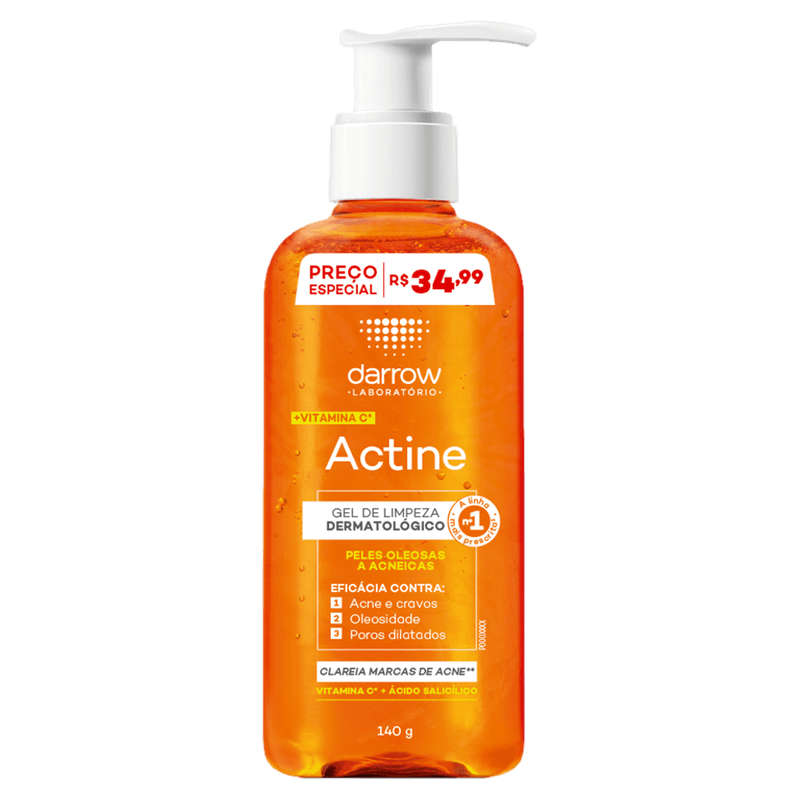 O Gel de Limpeza Dermatológico Actine Darrow limpa a pele oleosa e acneica profundamente sem ressecar.