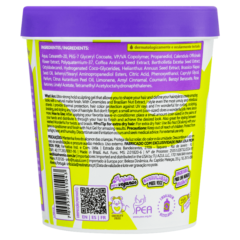O que sou: gel Modelador com fixação ultra forte que permite esculpir os cabelos e definir o penteado para criar looks incríveis, com um acabamento mate natural. Com Ceramidas e extrato de Castanha-do-Pará, estilizo até mesmo os fios mais rebeldes e indisciplinados. Tenho proteção térmica, proteção da cor do cabelo contra raios UV e sou maravilhoso para encaracolar, modelar, trançar e estilizar qualquer penteado. Mas não esqueça: uma pequena quantidade (moeda) faz um trabalho maravilhoso. Aqui, menos é mais.
