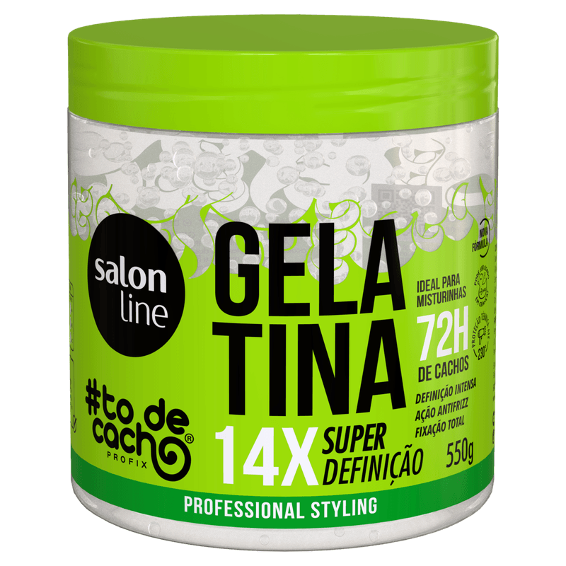 Conselho de Aplicação: Misture a gelatina com o creme para pentear ou ativador de cachos de sua preferência. Aplique nos fios, mecha a mecha, amassando-os de baixo para cima.
