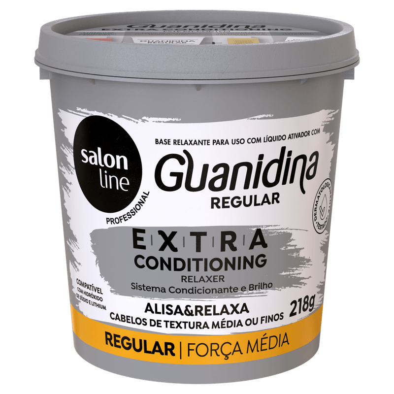 O Relaxamento Extra Guani Guanidina Brilho 218g Salon Line é um creme de tratamento especialmente formulado para cabelos de textura média ou finos. Proporciona um alisamento eficaz e relaxamento dos fios, aliado a um sistema condicionante que garante brilho intenso e maciez, facilitando o penteado e o cuidado diário.